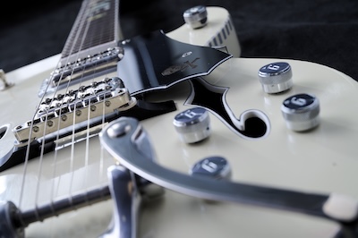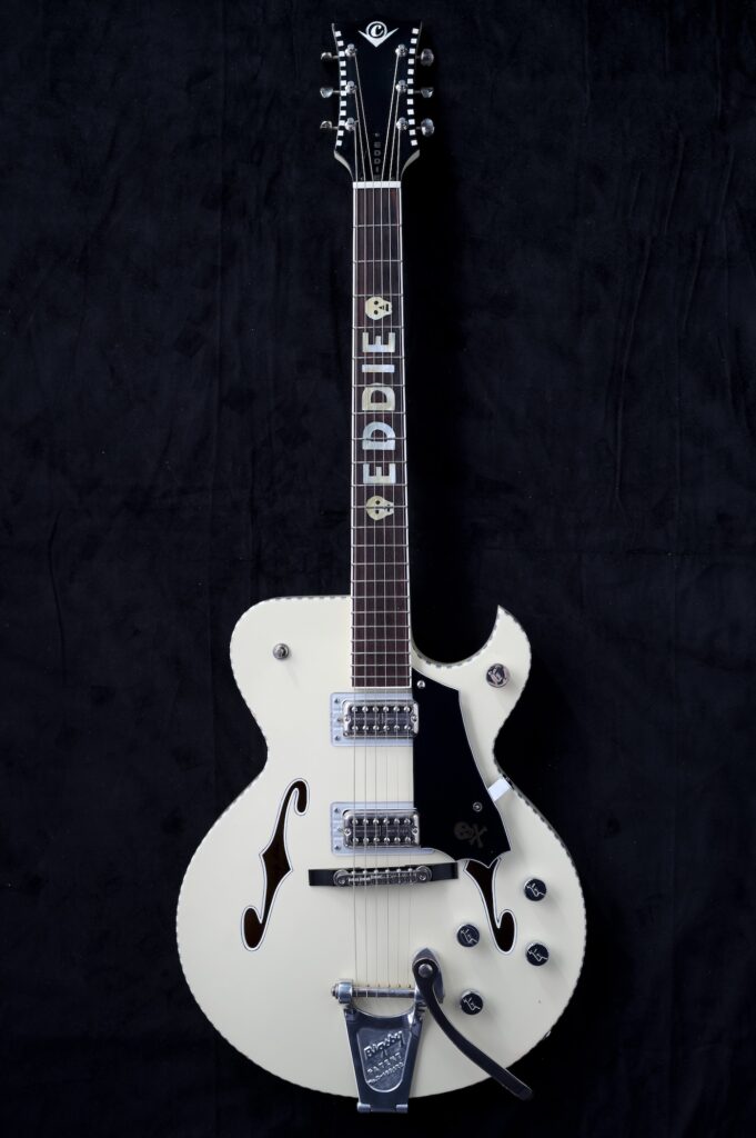 制作段階からEDDIE氏が監修。こだわりポイントを随所に散りばめたオリジナルセミアコギター。